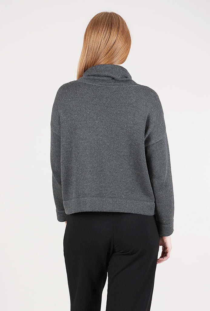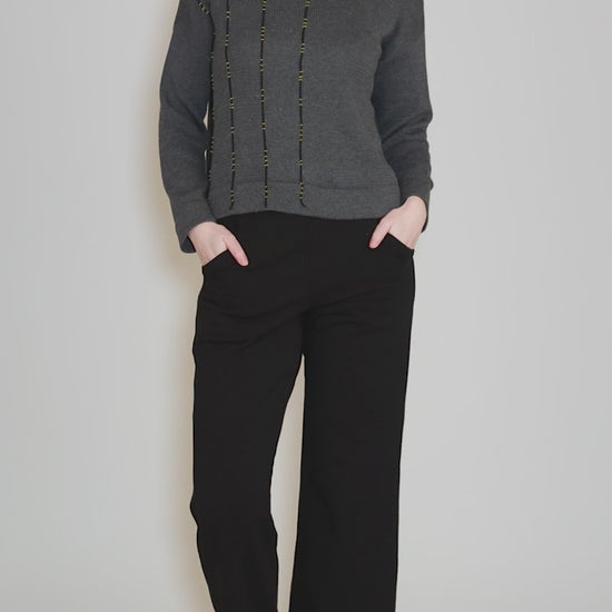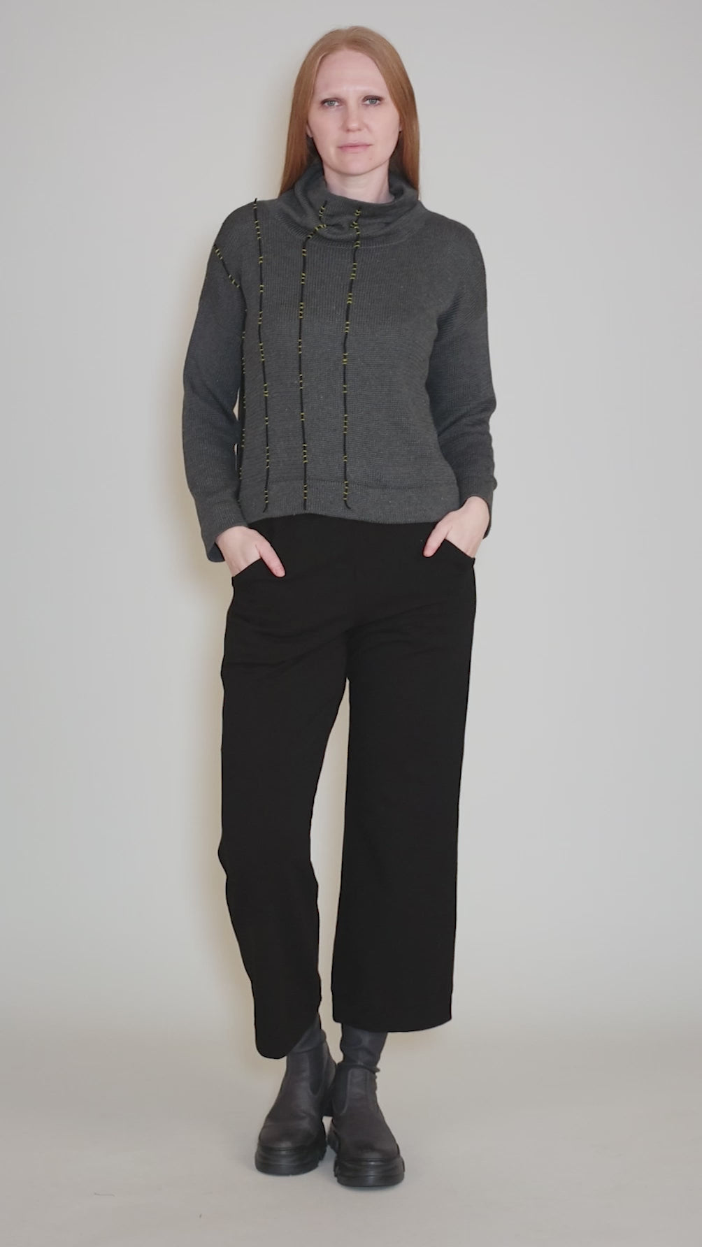 Knit in a soft, yet substantial cotton blend, the Taylor sweater has a short funnel neckline, a set-in shoulder and long sleeves. The body is deliberately boxy, with a versatile, hip-skimming length. Contrast cording is woven on one side of the chest, in black and chartreuse.