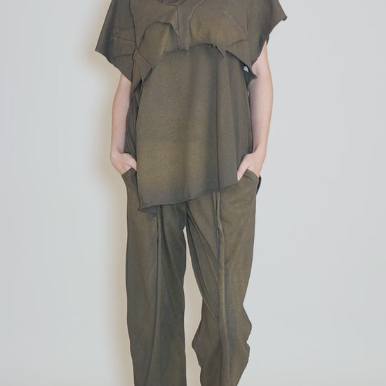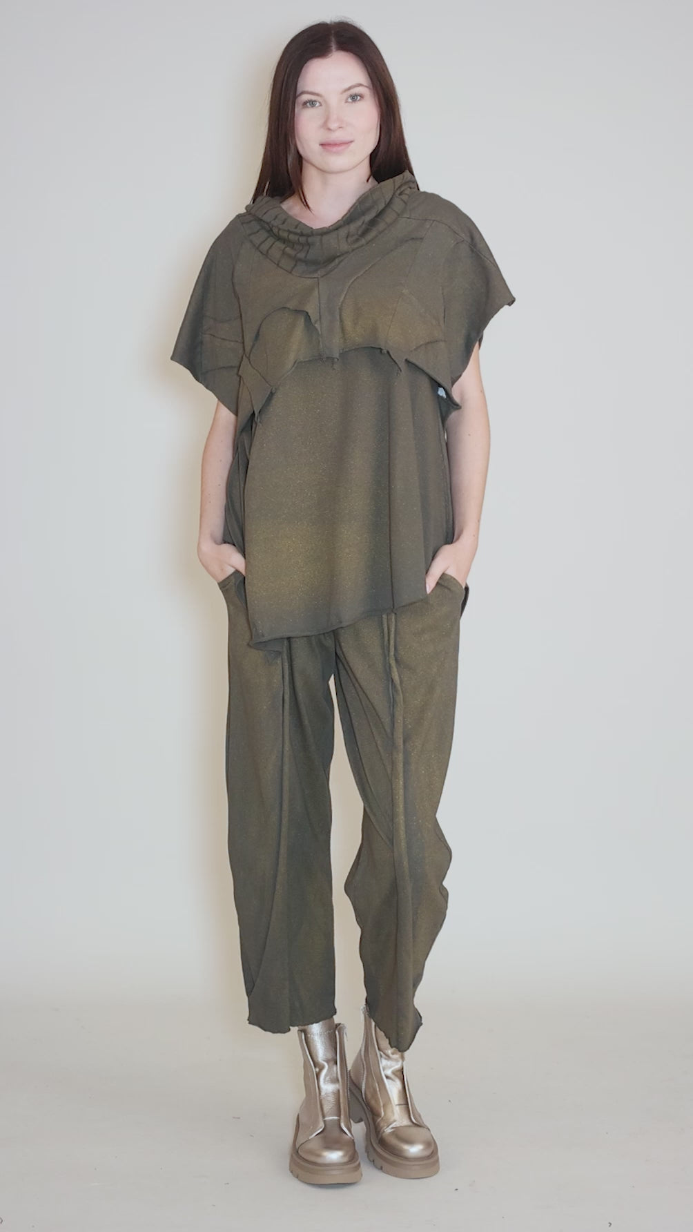 This one is a must-have! Crafted in a mid-weight cotton knit with intricate layers, this cool little topper has a short funnel neckline and short dolman sleeves. The fit is relaxed and dramatically cropped, making it a terrific layering partner.