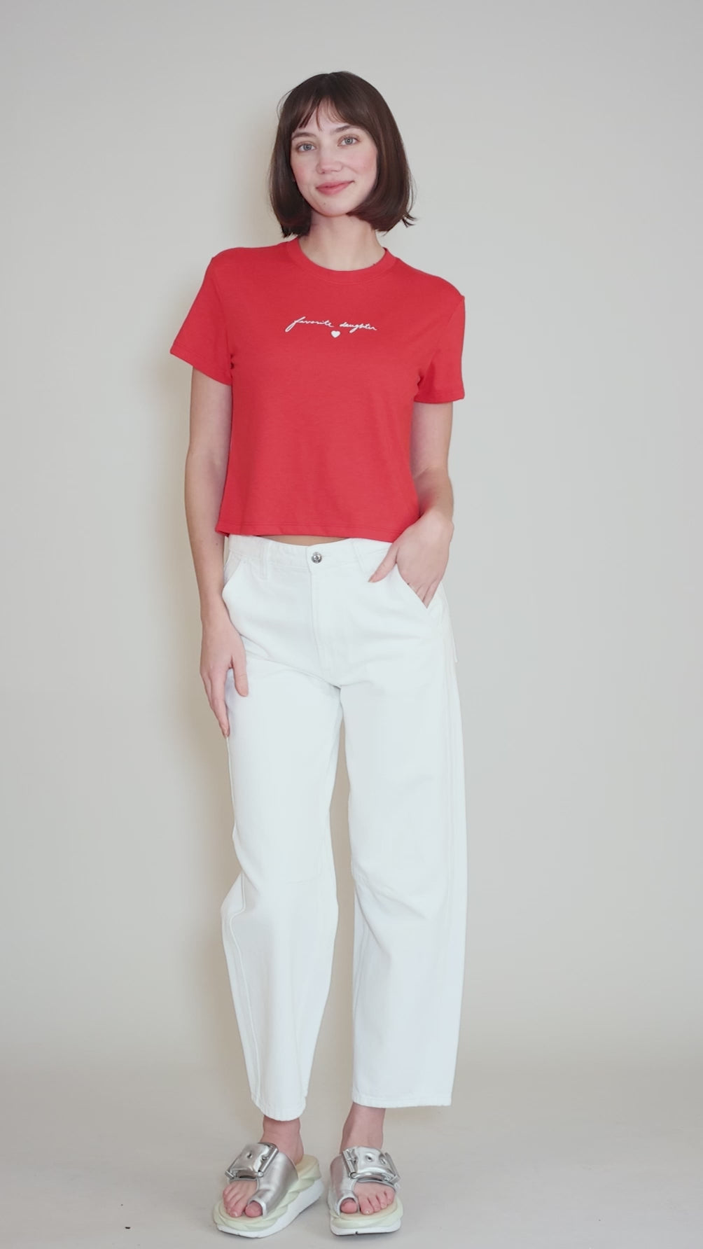 Done in a soft cotton blend, this jersey tee has a rounded neckline, short sleeves and a deliberately boxy silhouette. The length is slightly cropped, hitting at the high hip on most.