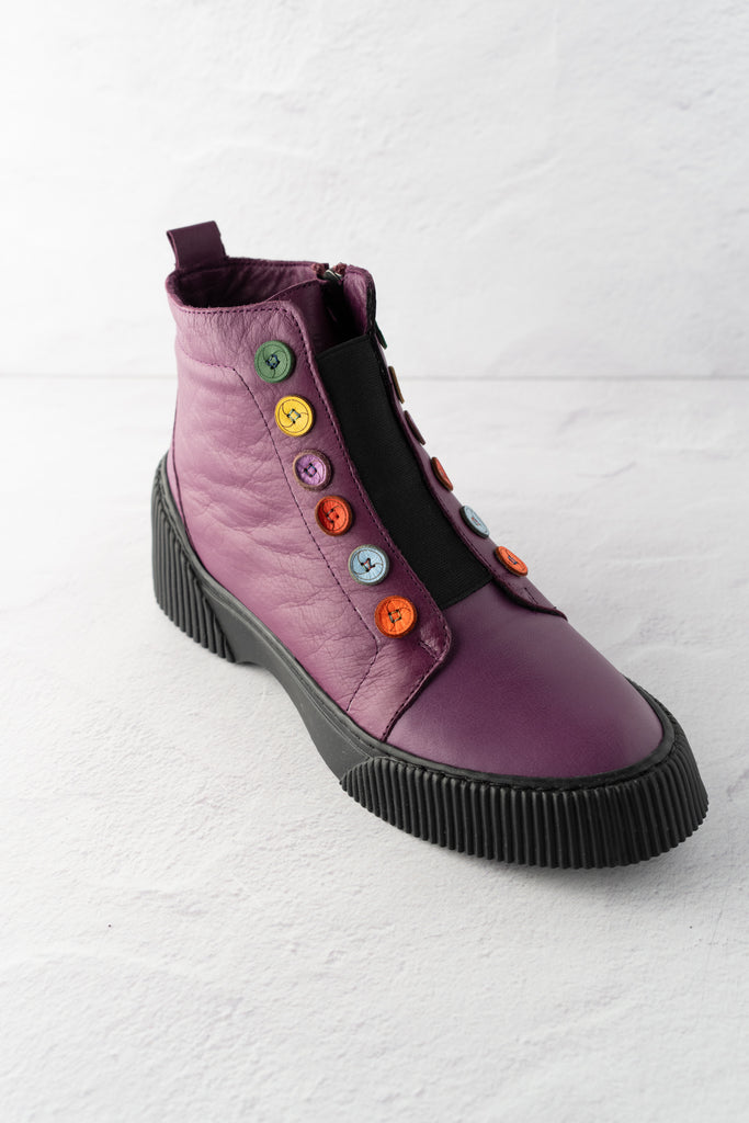 The Tina Button Boots combine style, color, and comfort in one effortlessly chic design in the color purple. Made from buttery soft leather and accented with playful, vibrant leather buttons, they bring a pop of personality to any outfit.