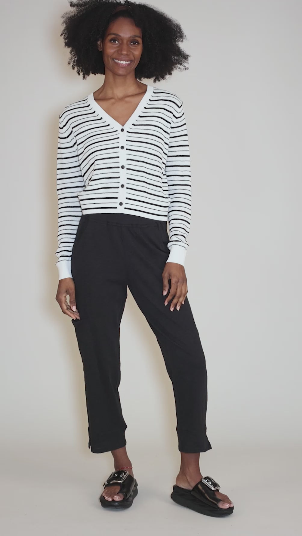 Tira is made in a lightweight viscose knit, with a V neckline, a button-front placket and a long sleeves. The silhouette is trim and tailored, with a versatile, hip-skimming length.
