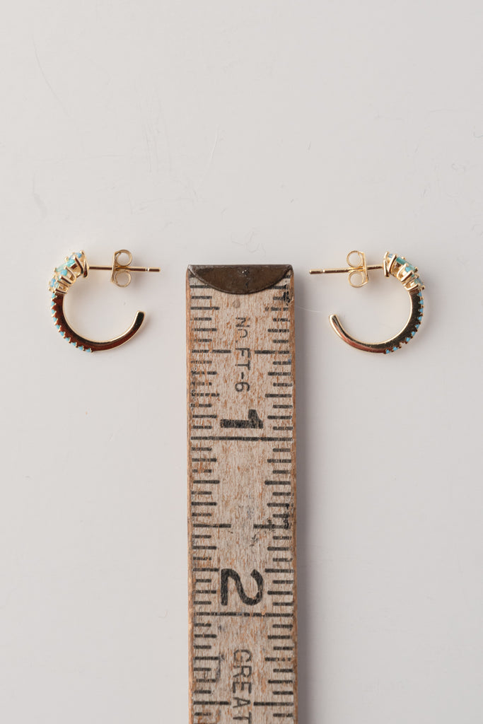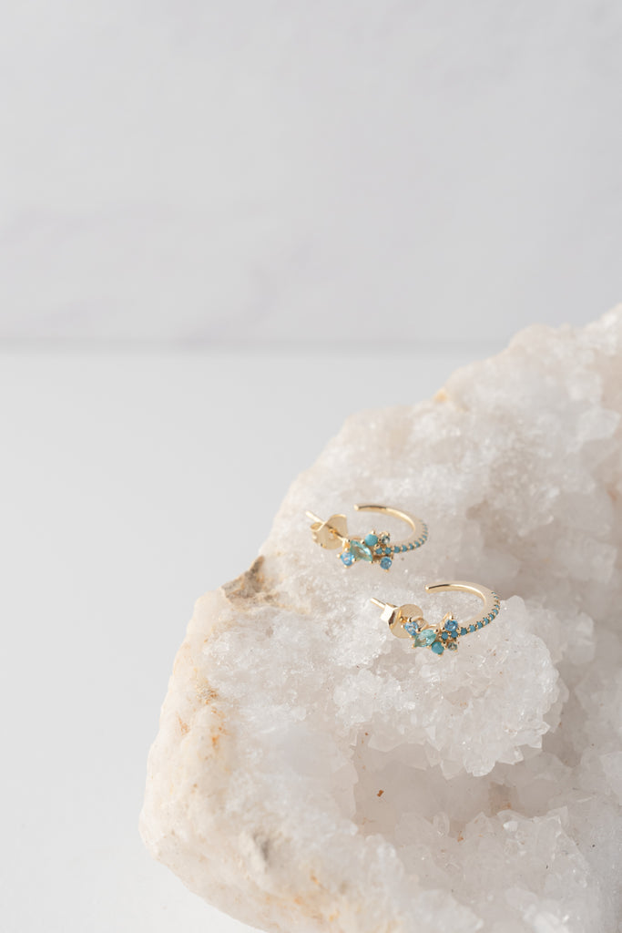 Crafted in high-quality 14K gold vermeil and accented with multi-cut turquoise cubic zirconia gemstones, these vibrant mini hoops bring a tropical pop of color to your everyday style. The delicate size makes them perfect for stacking, while the mix of cuts creates a playful, sparkling finish that feels both modern and timeless.