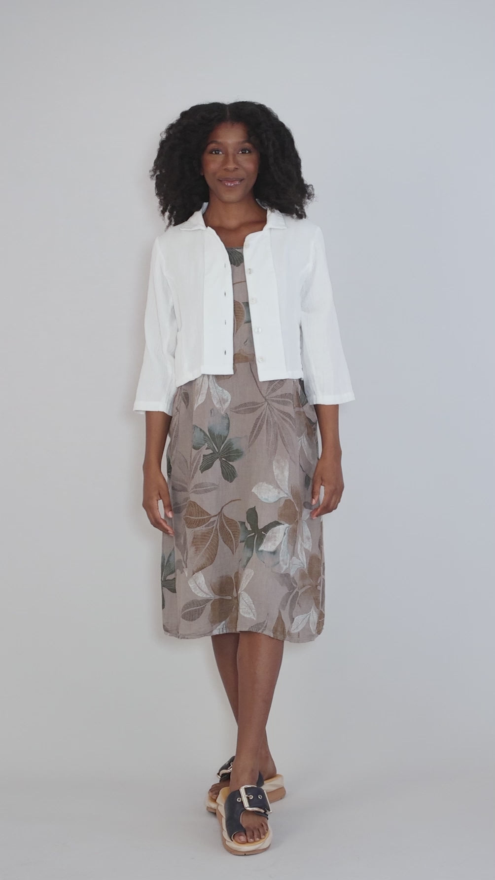 Done in a soft woven cotton, Parker is cropped, with a button-front placket, a small shirt collar and three-quarter-length sleeves. The silhouette is slightly shrunken, making this a terrific partner to higher-waisted bottoms, but the fit is still relaxed.