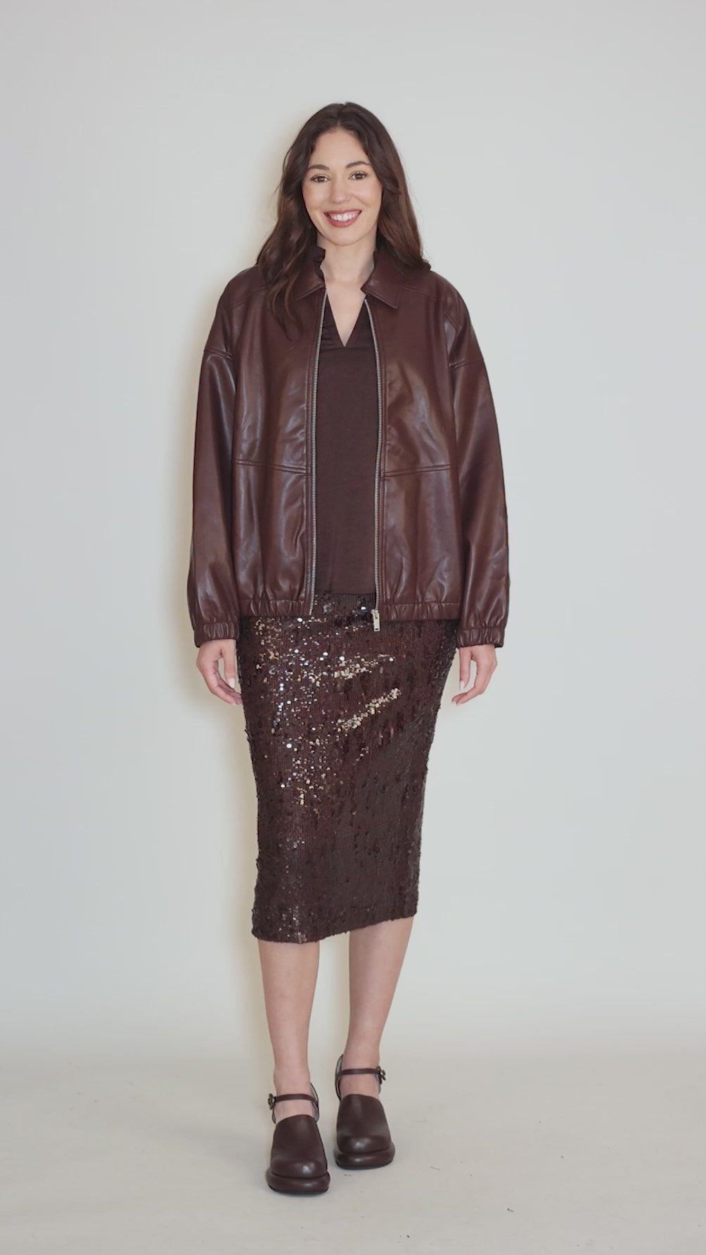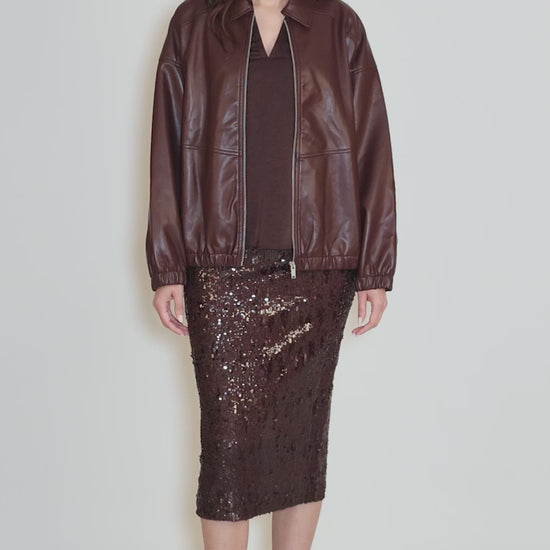 Vegan Leather Bomber Jacket, Plum Wine