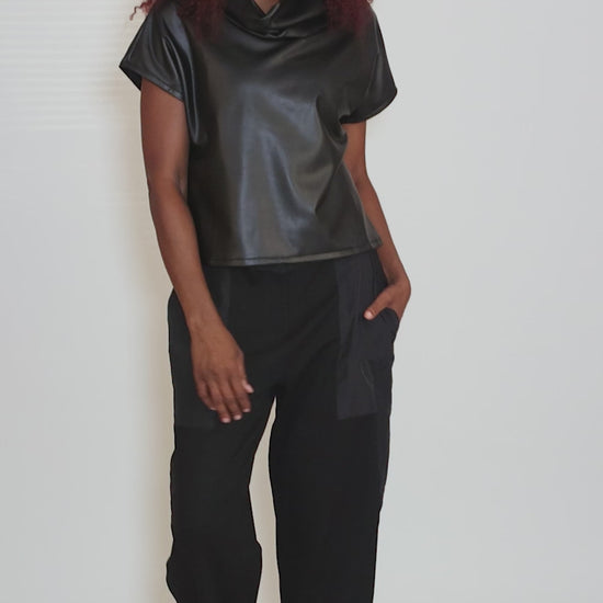 Suki Top, Black Vegan Leather