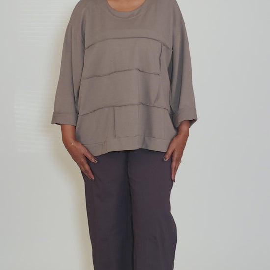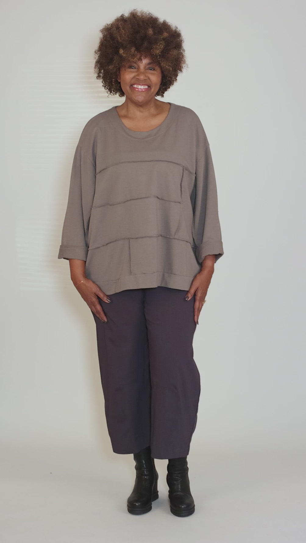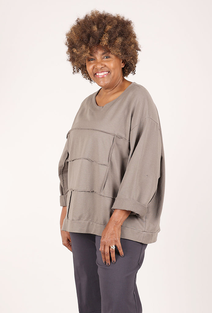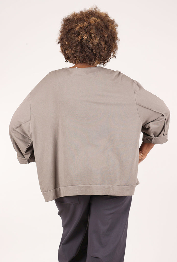 Done in a semi-structured terry knit, this cool little pullover has a drop-shoulder construction and extra-long sleeves. The body is deliberately boxy, with dimensional seaming and a single patch pocket on one hip. We find this is running on the large side.