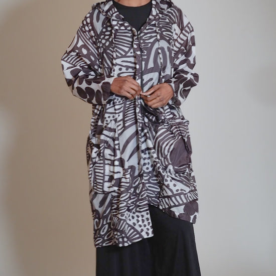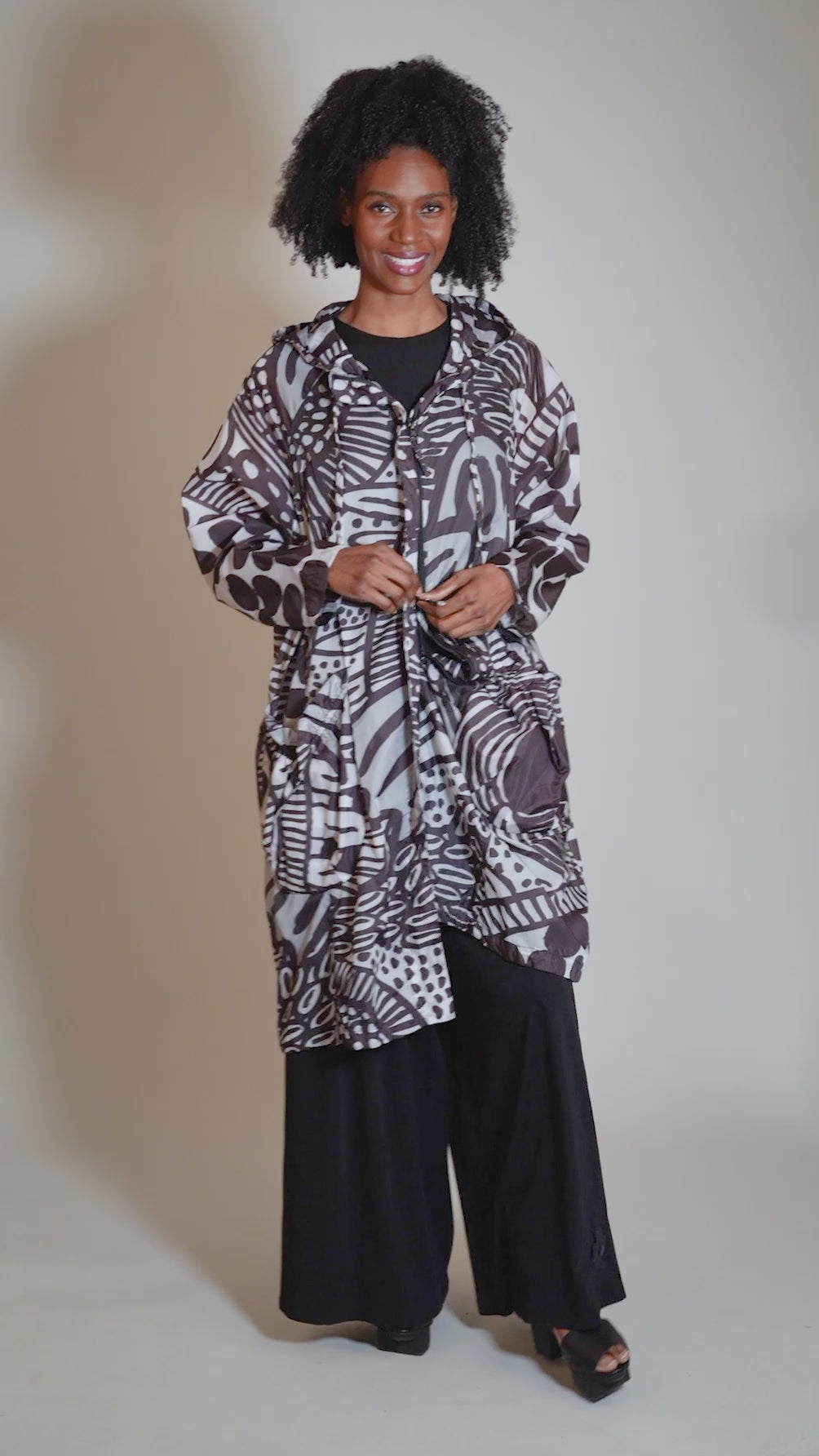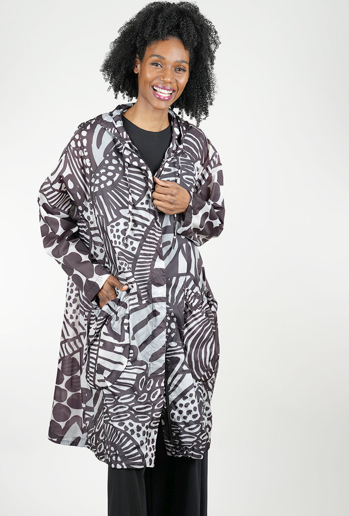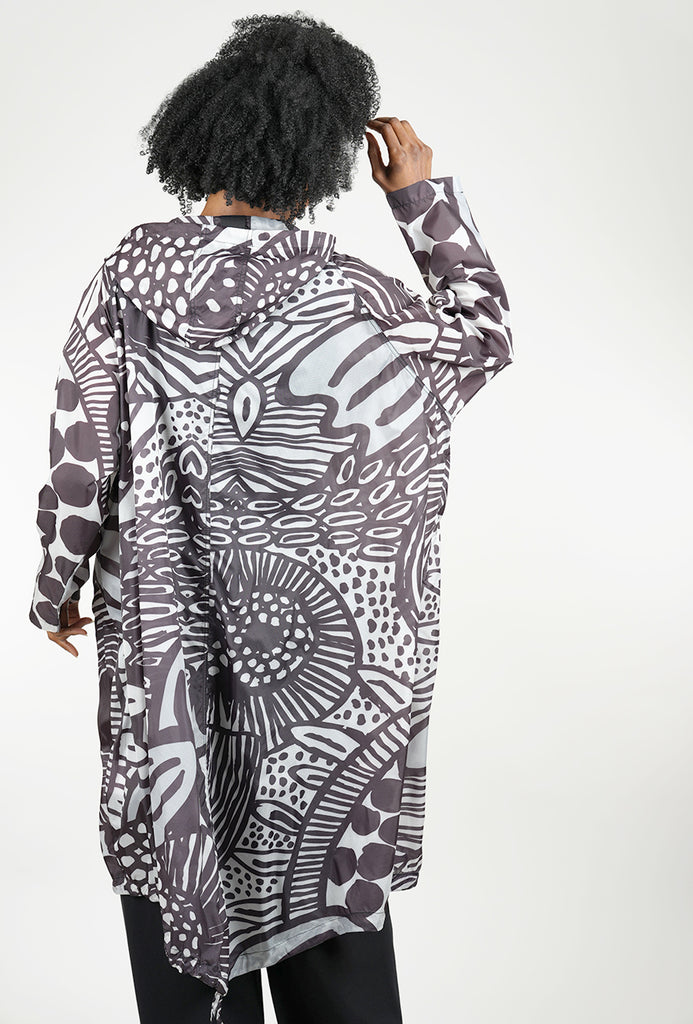 Made in a very light, very airy poly blend, this little topper will add a protective layer against the elements on those days you just need a little something-something -- with a lot of style! The jacket is quite oversized, with a double-zipper front closure, hip pockets and a generous hood.