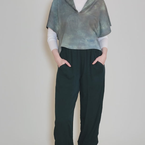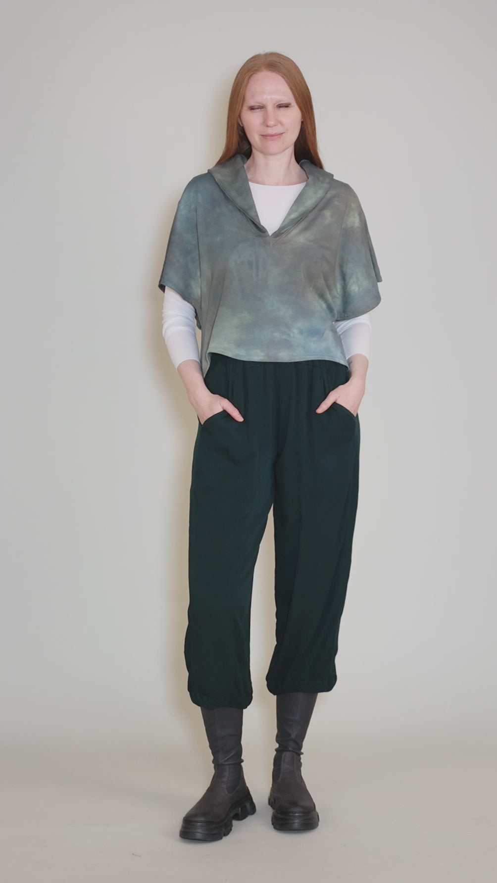 The Evie Lou crew swooned for Wren the moment it was unpacked. It's made in a lusciously soft bamboo-cotton knit blend that's been hand-dyed to gorgeous effect, in pastoral shades of green with hints of magenta throughout. Wren has a V neckline, with a shawl collar and deeply pitched dolman sleeves that gently drape to the elbow. The cropped length nips at the waist. We find this is running more true to size than many Cynthia Ashby styles.