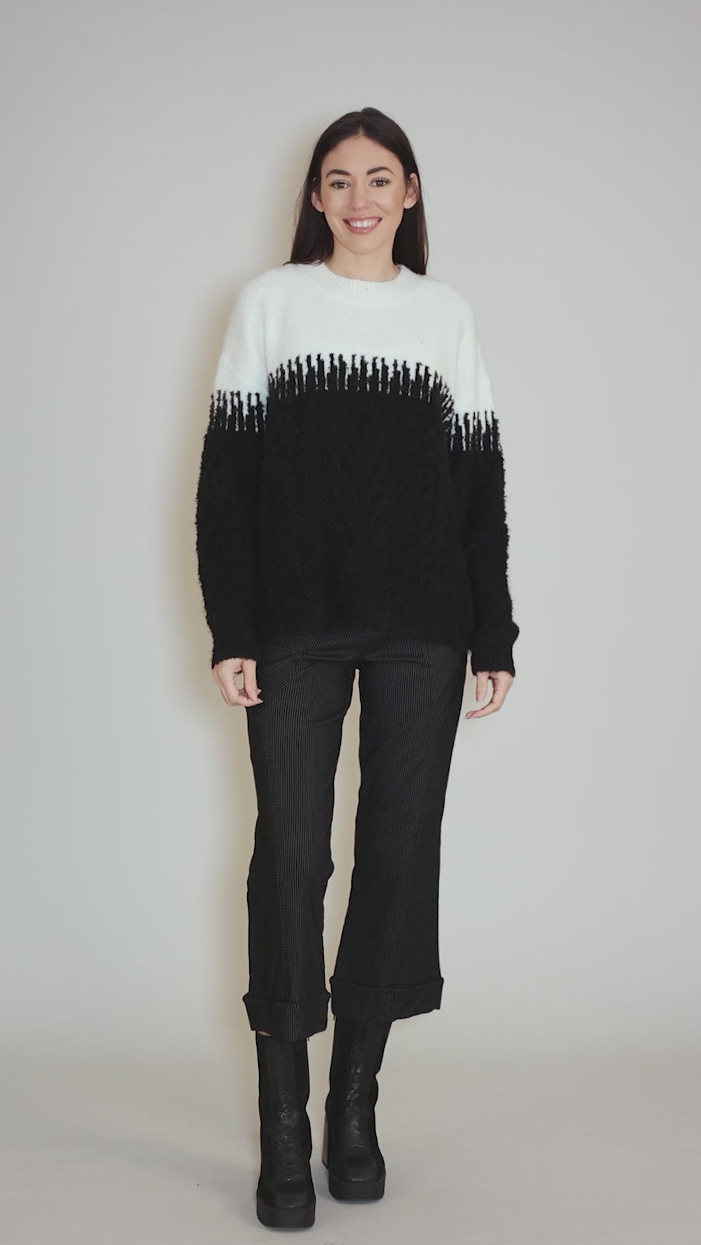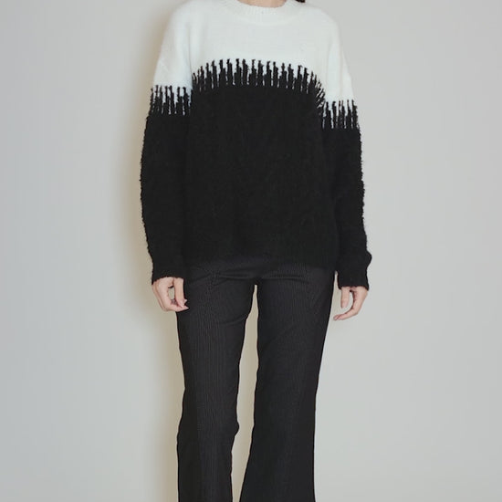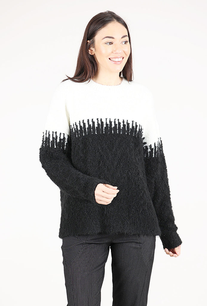 Yarn Mix Sweater, Black/Ecru